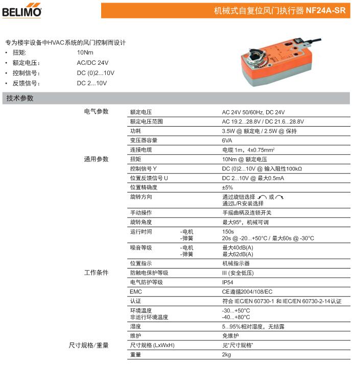 • NF24A機械式自復位風門執行器